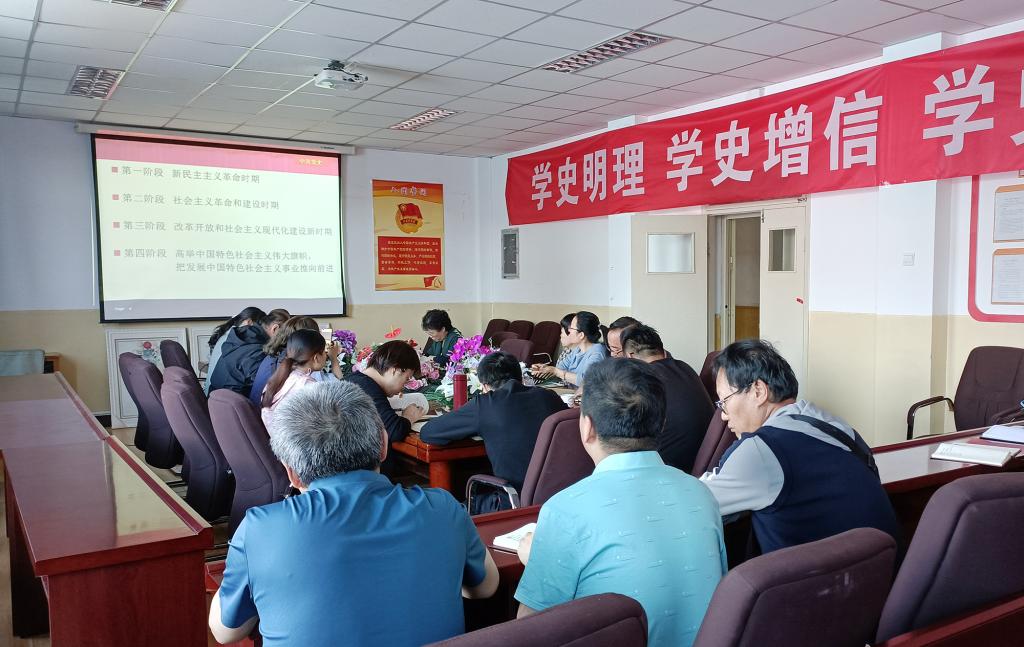 5月19日下午,bevictor伟德官网教工党支部召开党史学习教育专题党课。教工党支部副书记尚珍同志作了《铭记历史 望未来》的专题党课。党支部成员参加了学习。